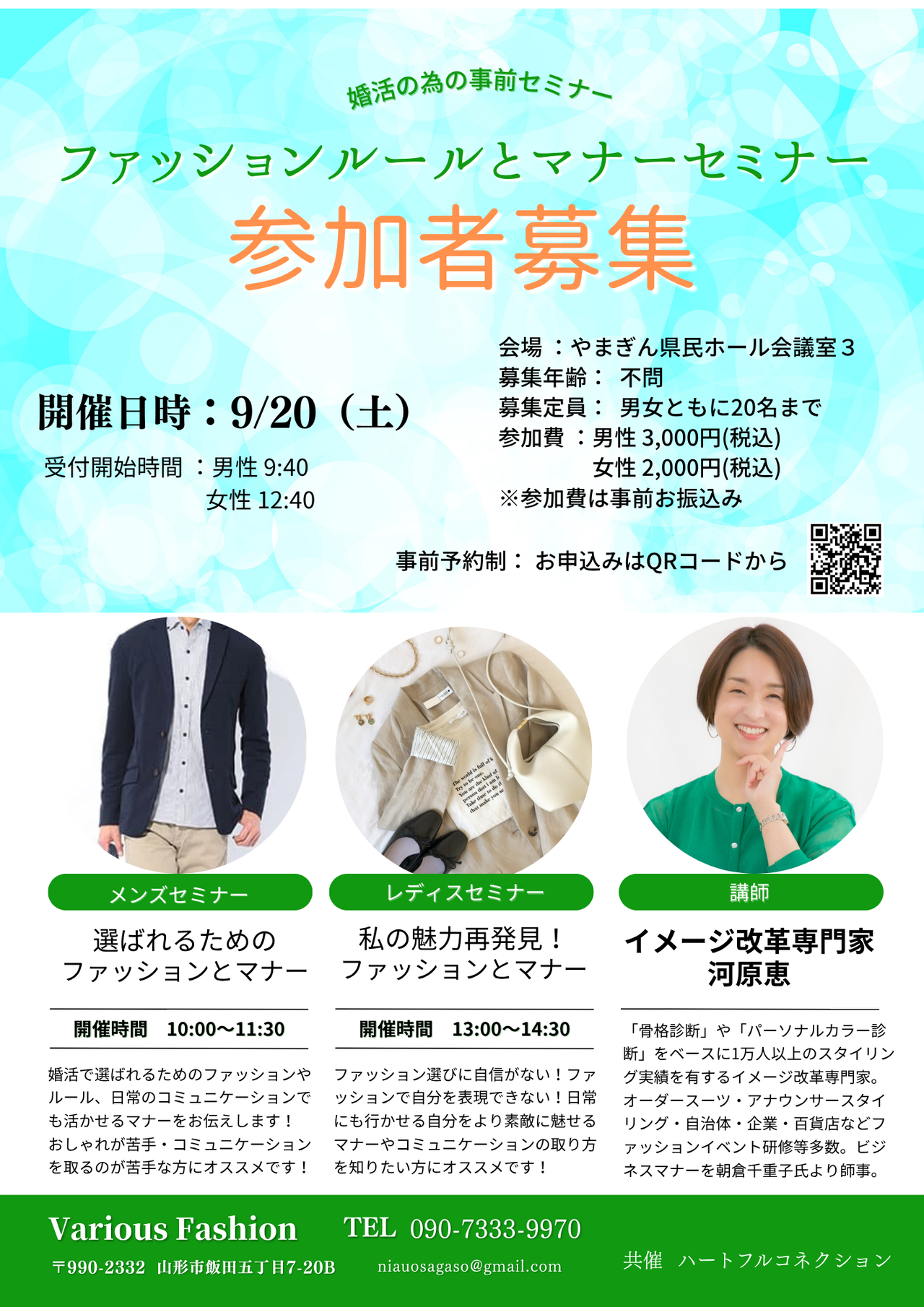 募集人数は、男女10名ずつの20名を予定しております。お申し込みは、チラシのQRコードよりお進みください。ご参加をお待ちしております。