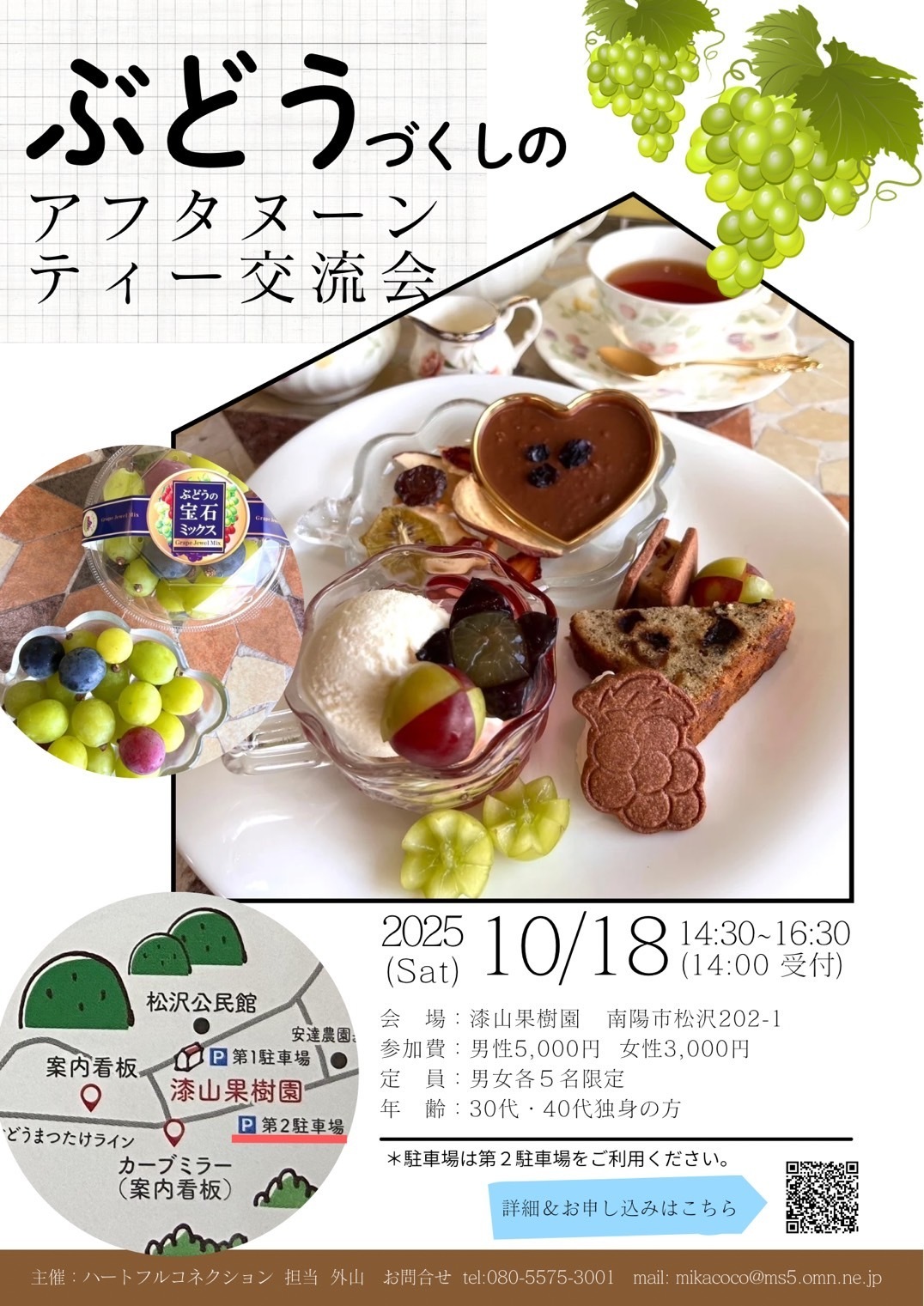 南陽市の有名果樹園で開催されるオシャレな午後のティータイム交流会。少数制でじっくり大人時間を過ごしませんか?