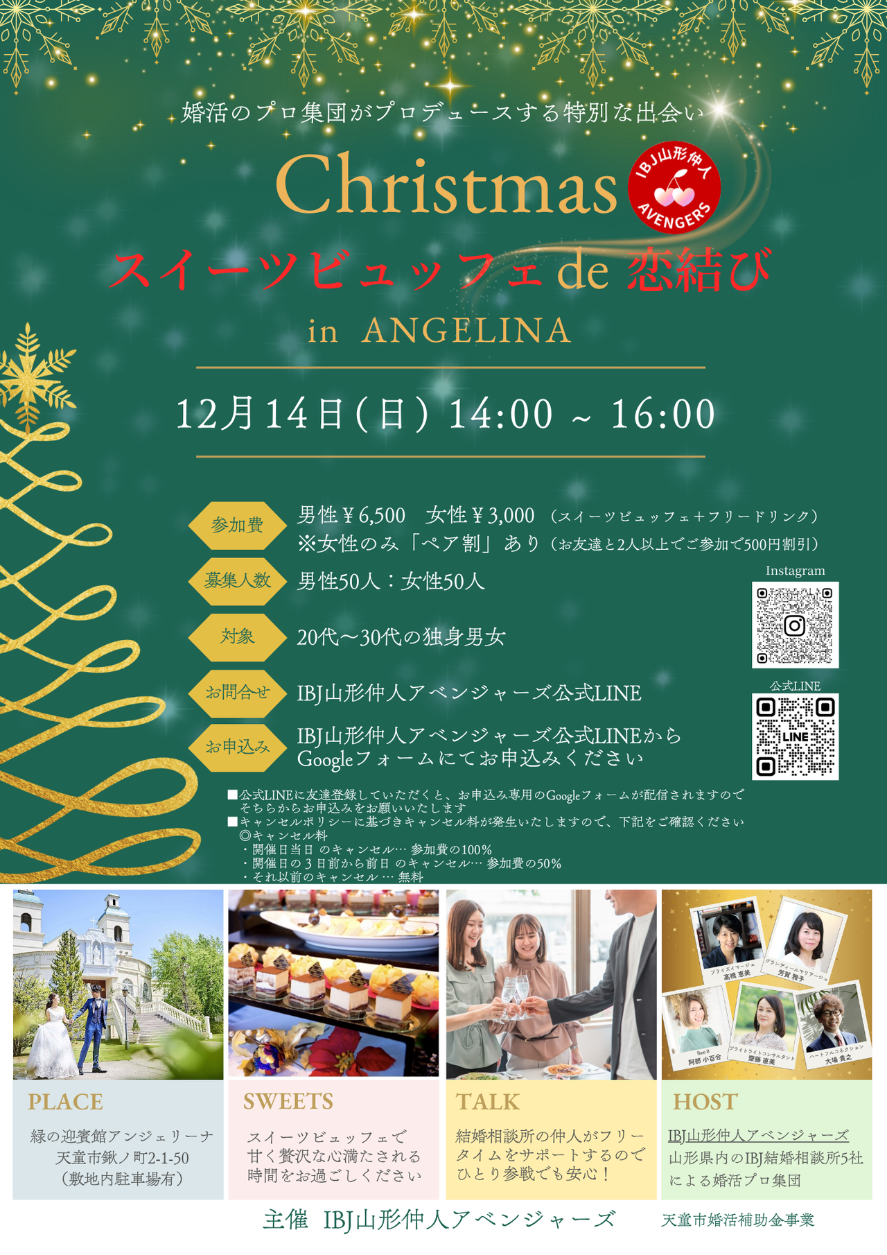 この冬、山形県天童市のアンジェリーナにて100名規模の婚活パーティーを開催!プロの仲人で出会いに彩を表現します。