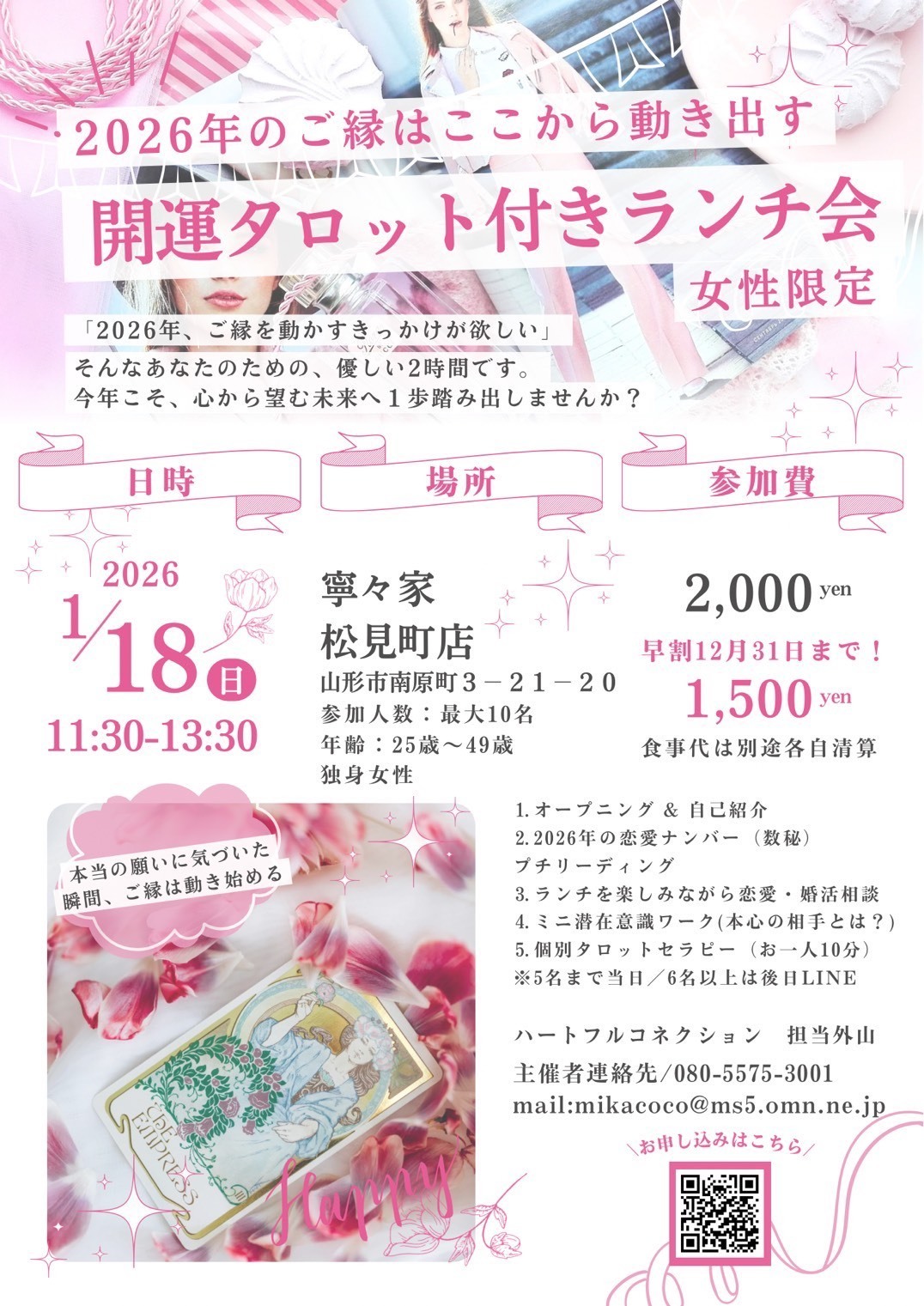 2026年は丙午(ひのえうま)で、「強いエネルギーで道を切り開く、努力が実を結ぶパワフルな年と言われています。そんな元気な1年のはじまりの開運ランチ会にご参加してみませんか?