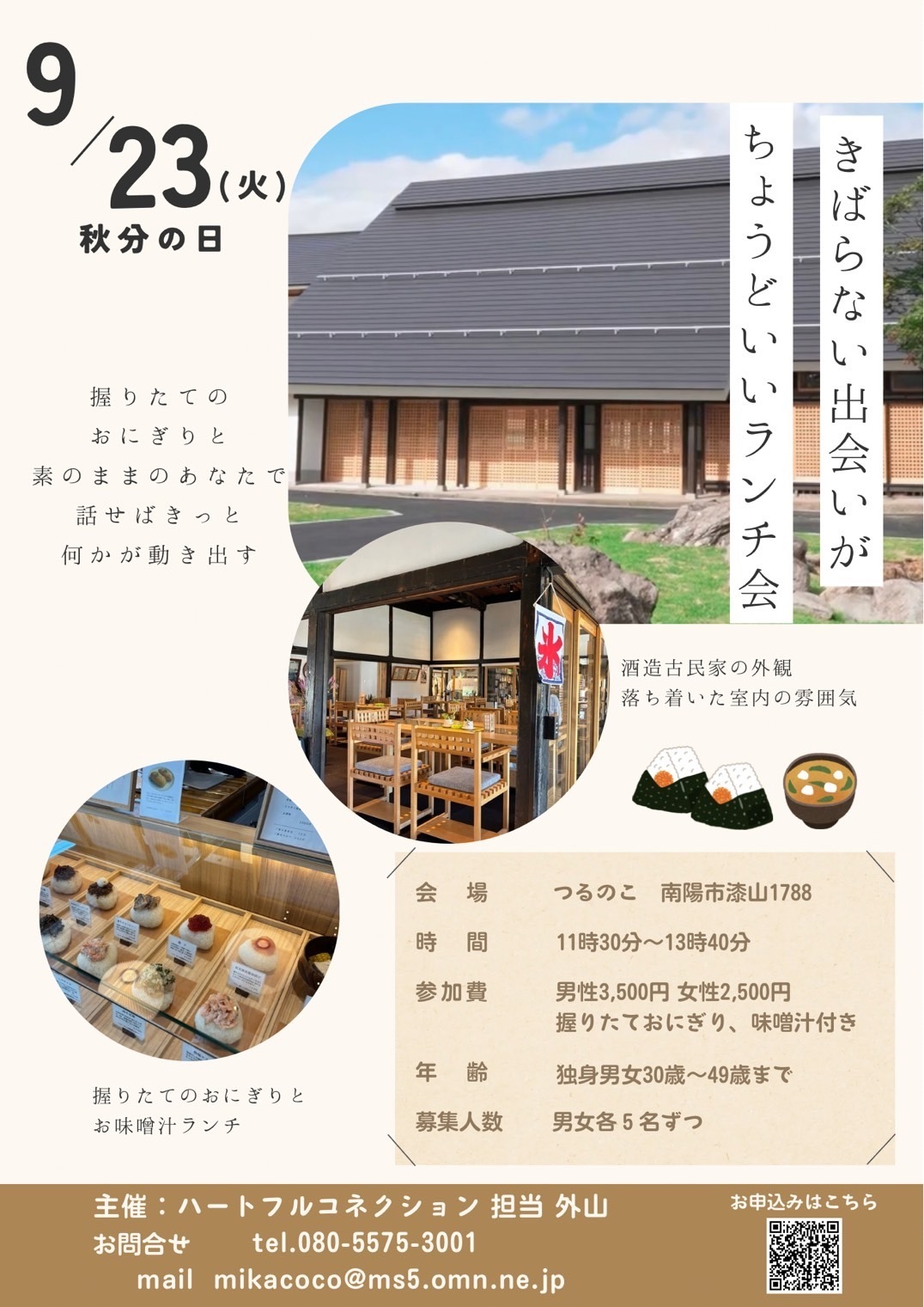募集人数は、男女4名ずつの8名を予定しております。お申し込みは、チラシのQRコードよりお進みください。ご参加をお待ちしております。
