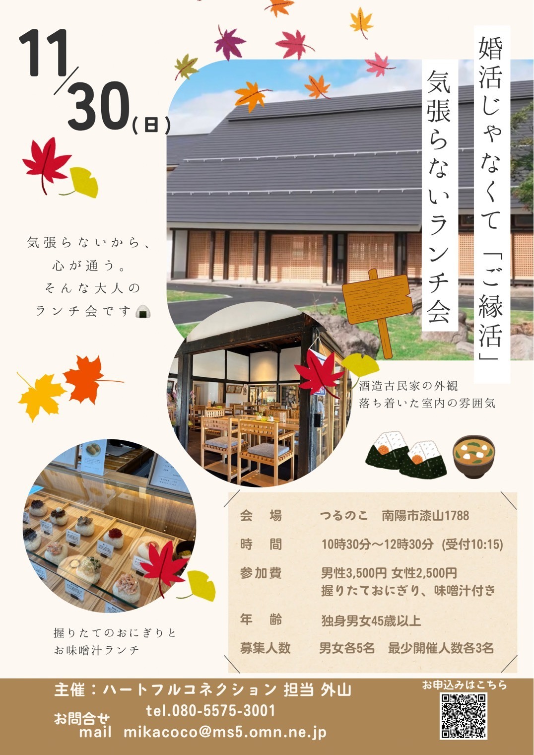 南陽市にあるつるのこさんのフリースペースを貸し切って開催するランチ会です。木の香り漂う落ち着いた空間で出会いを探してみませんか?