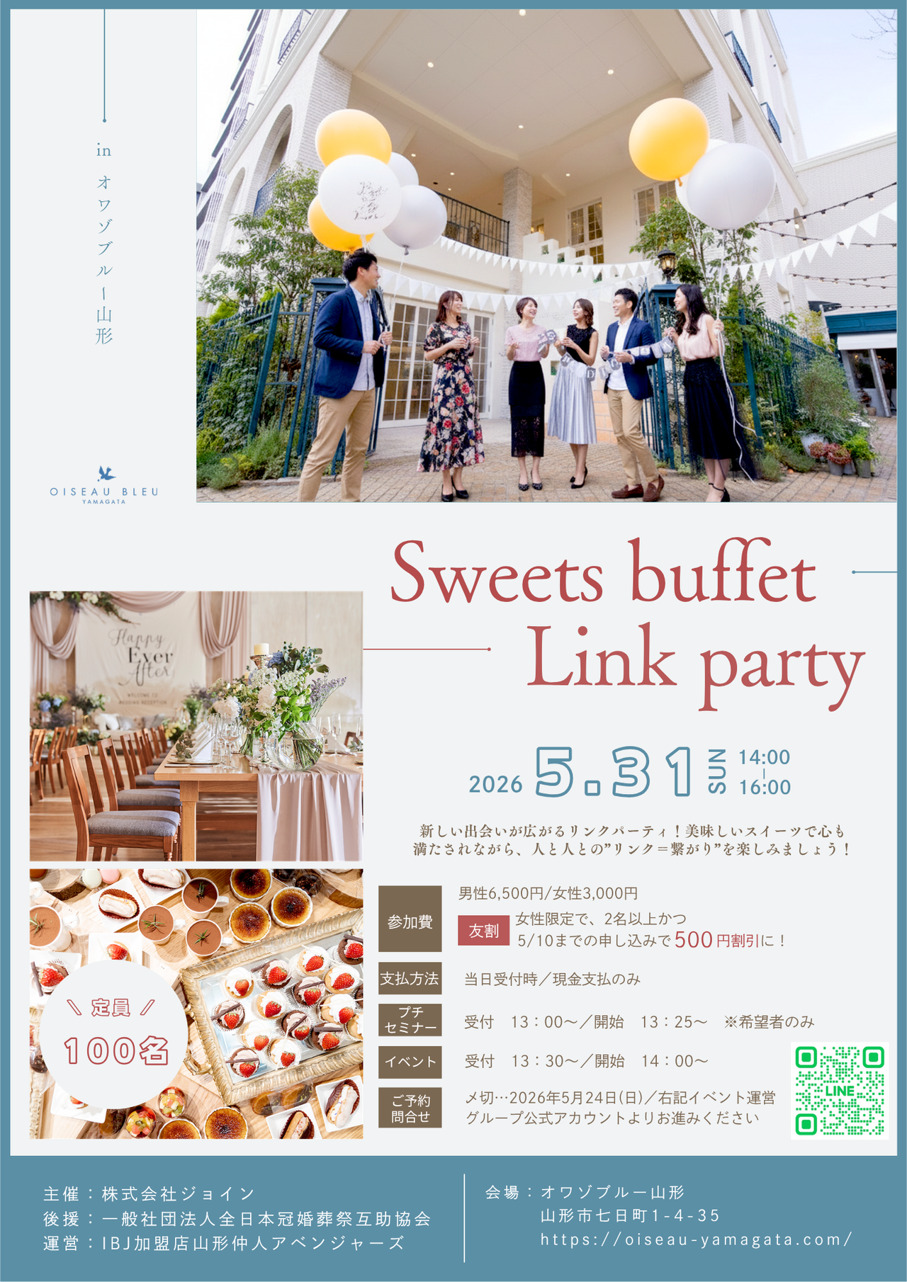 結婚式場を貸し切って開催される大型合コン。本格的なスイーツビュッフェと交流で素敵な出会いを探しにいきませんか。